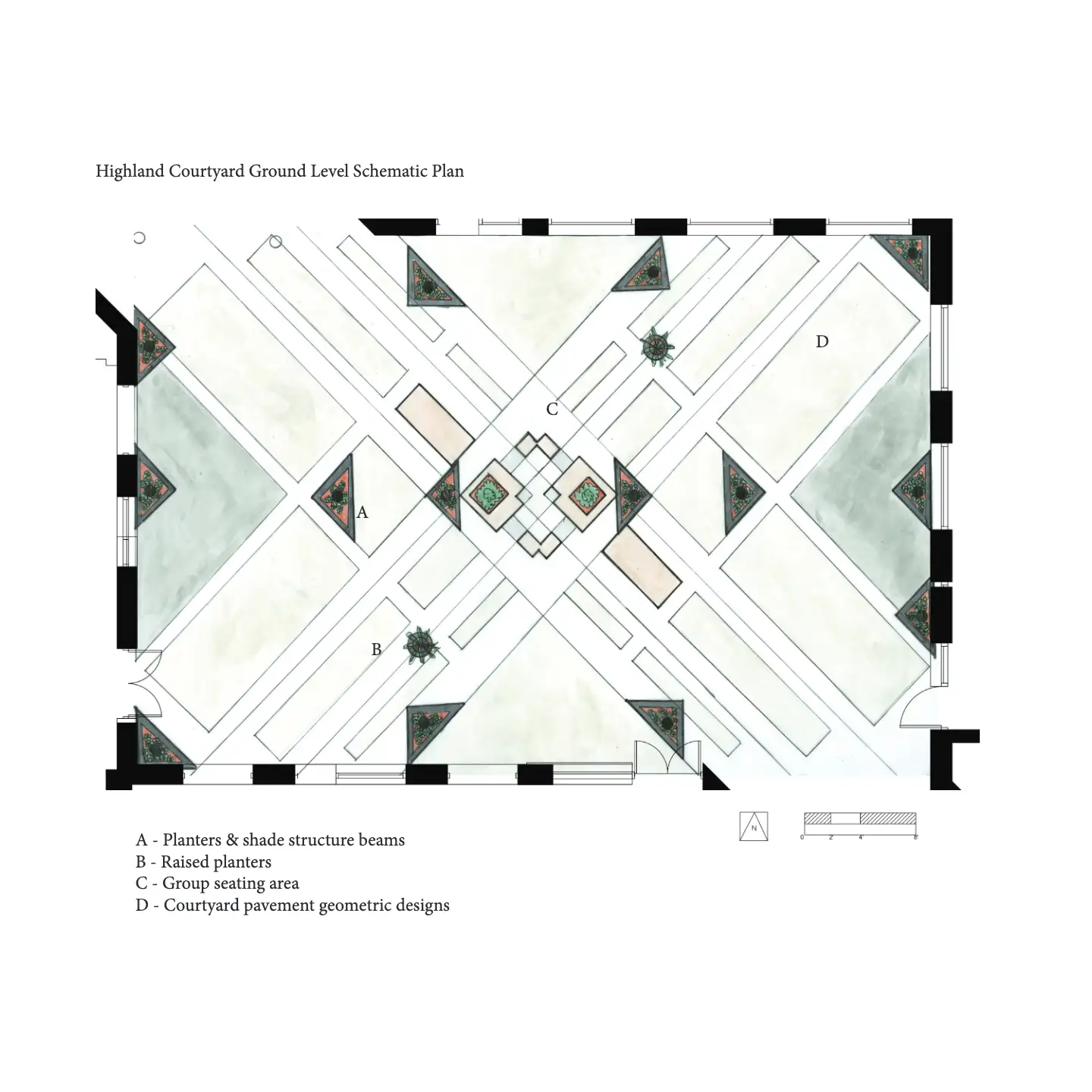The project was my very first landscape architecture studio project, focusing on design principles rhythm and emphasis. I completed every step of the project from the abstract sketches to the physical 3D model.