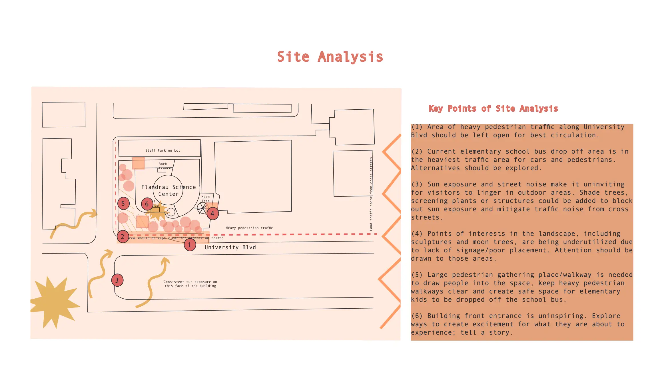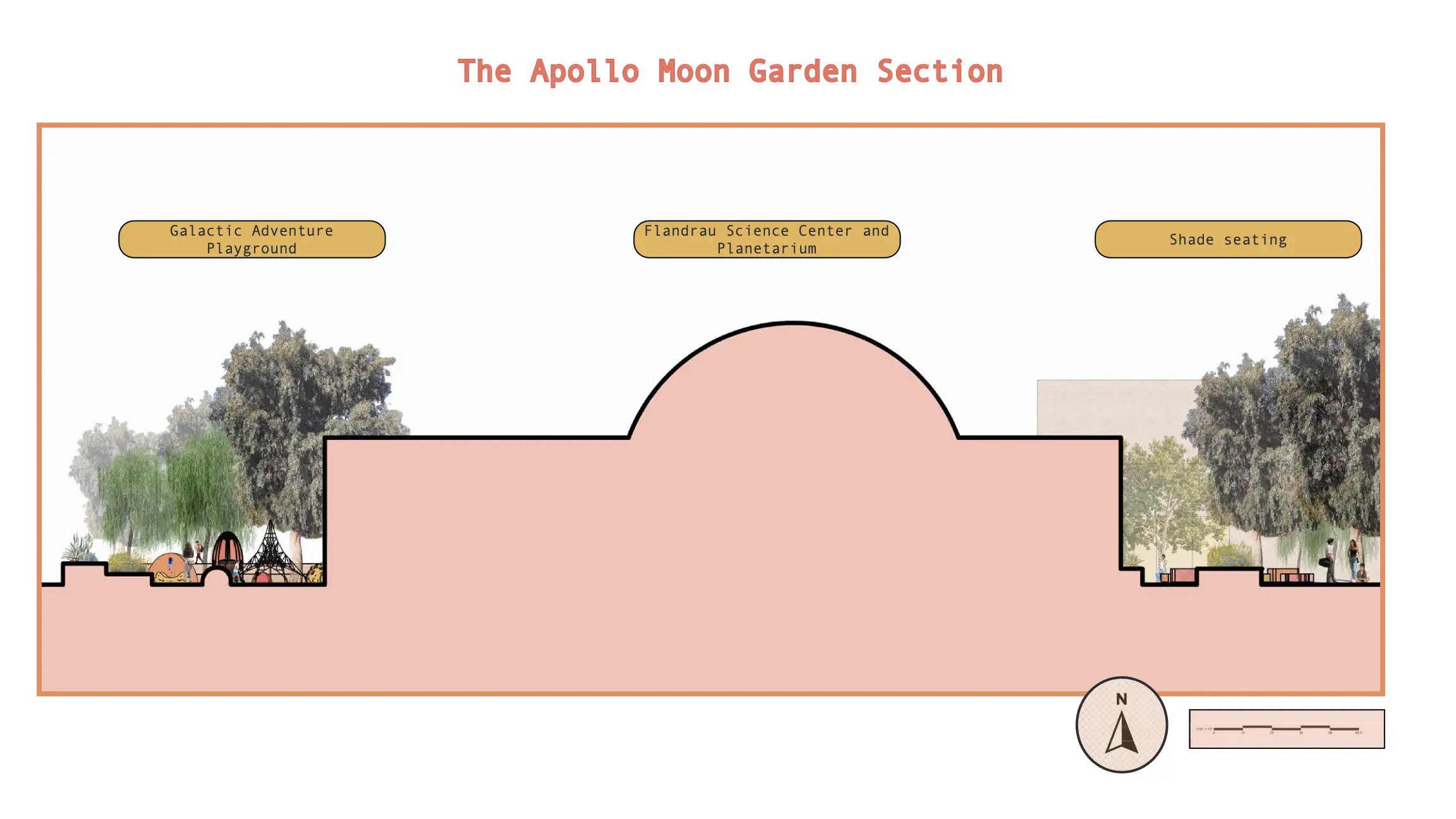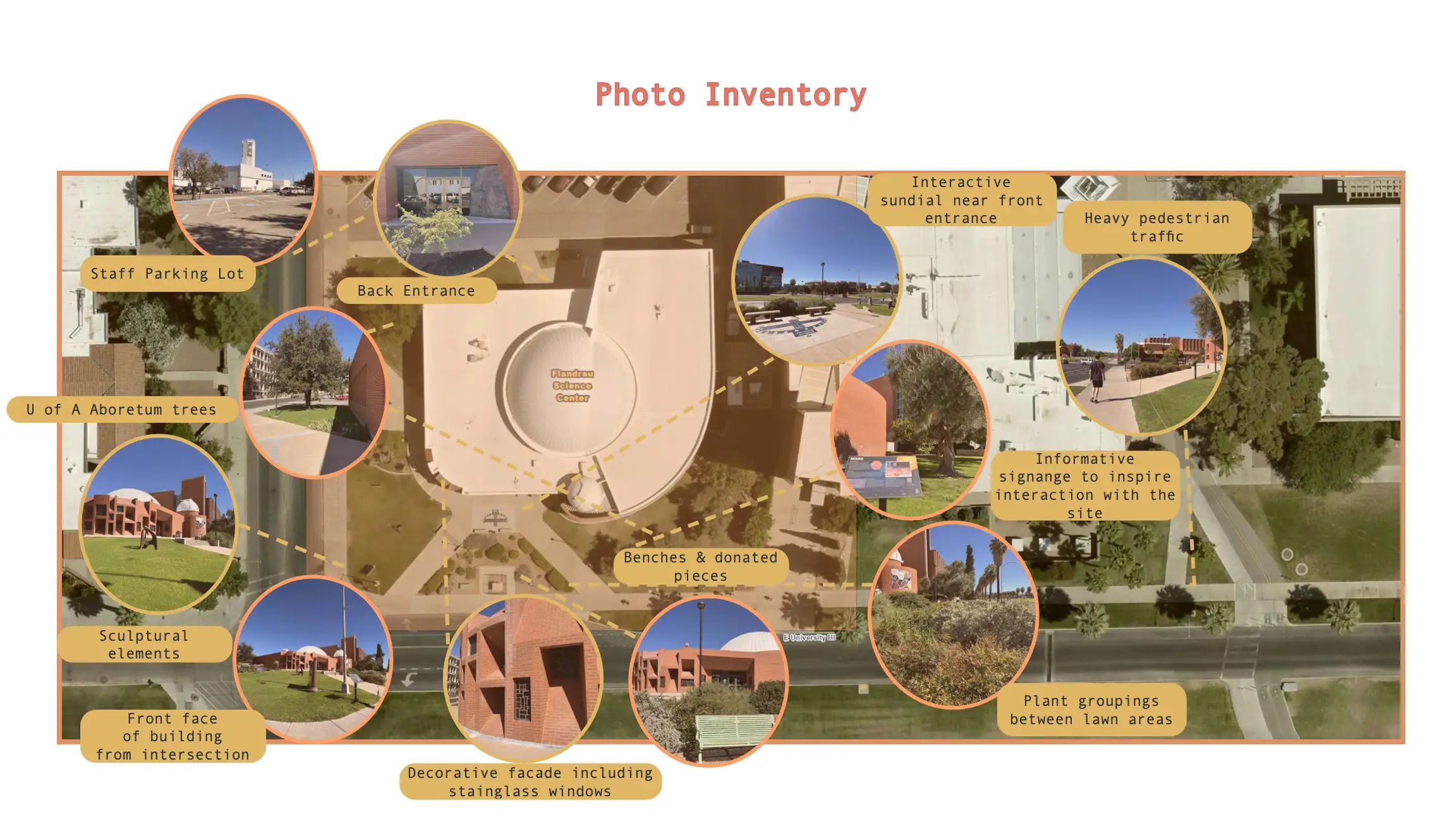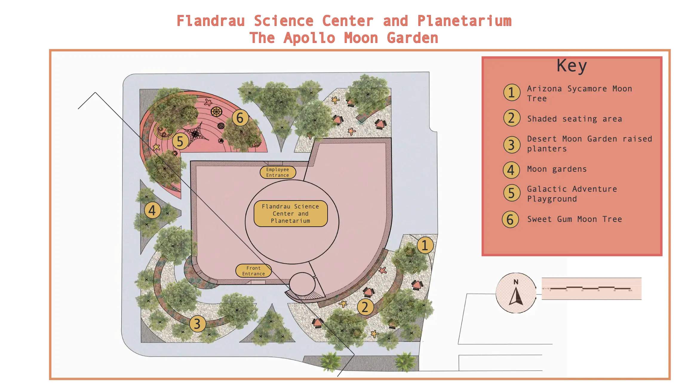 This project involved the design of the landscape surrounding the Flandrau Science Center and Planetarium on the University of Arizona. Through their partnership with the Tucson Unified School District, the Flandrau has become a popular elementary school field trip destination. It was imperative to create a landscape that catered to the university campus and the children that visit the Flandrau each week