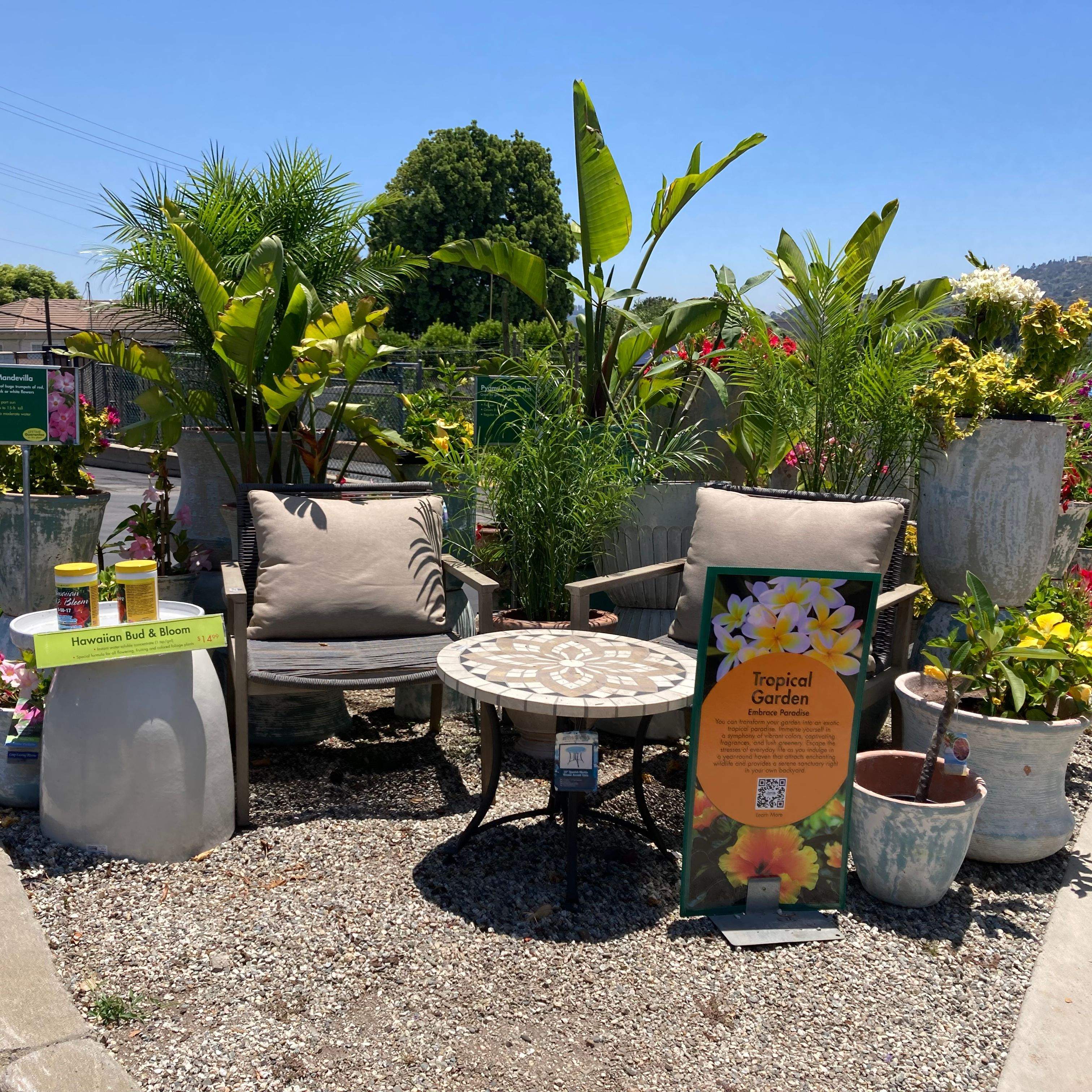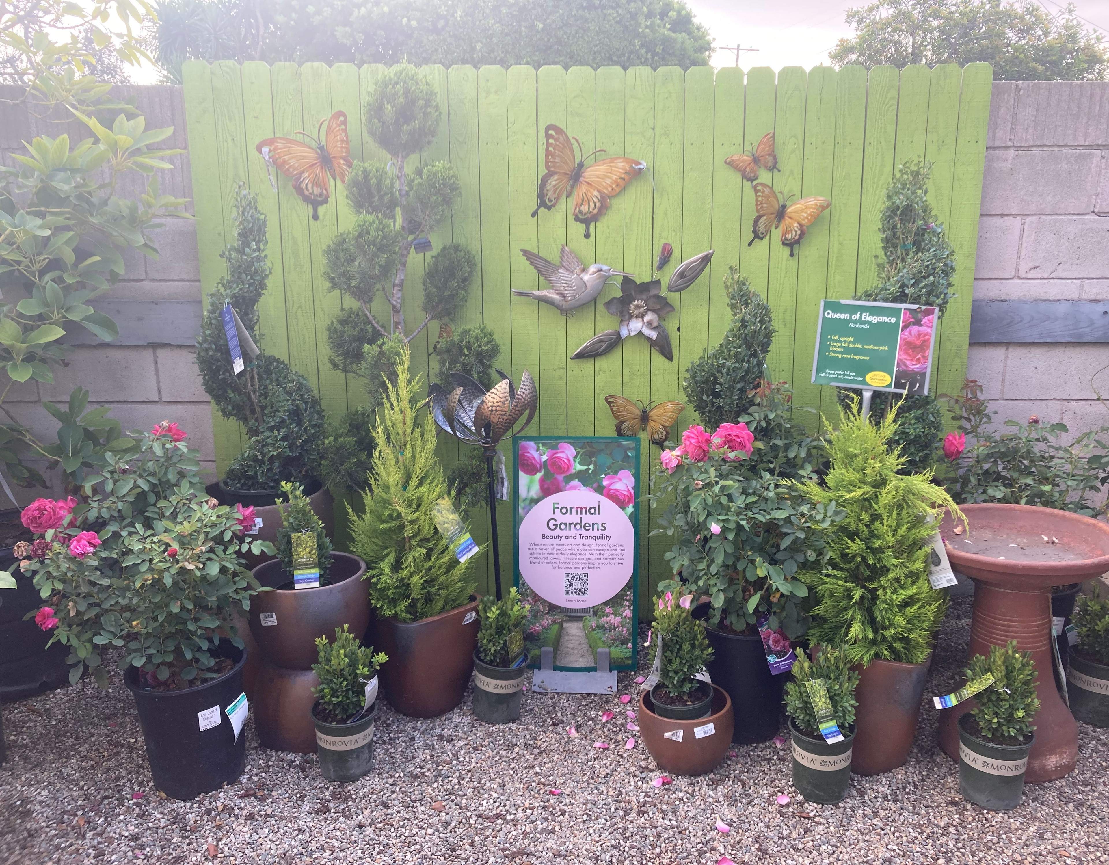 I created container garden displays around certain themes and goals such as Tropical Gardens, Pollinator Gardens, and Scent Gardens